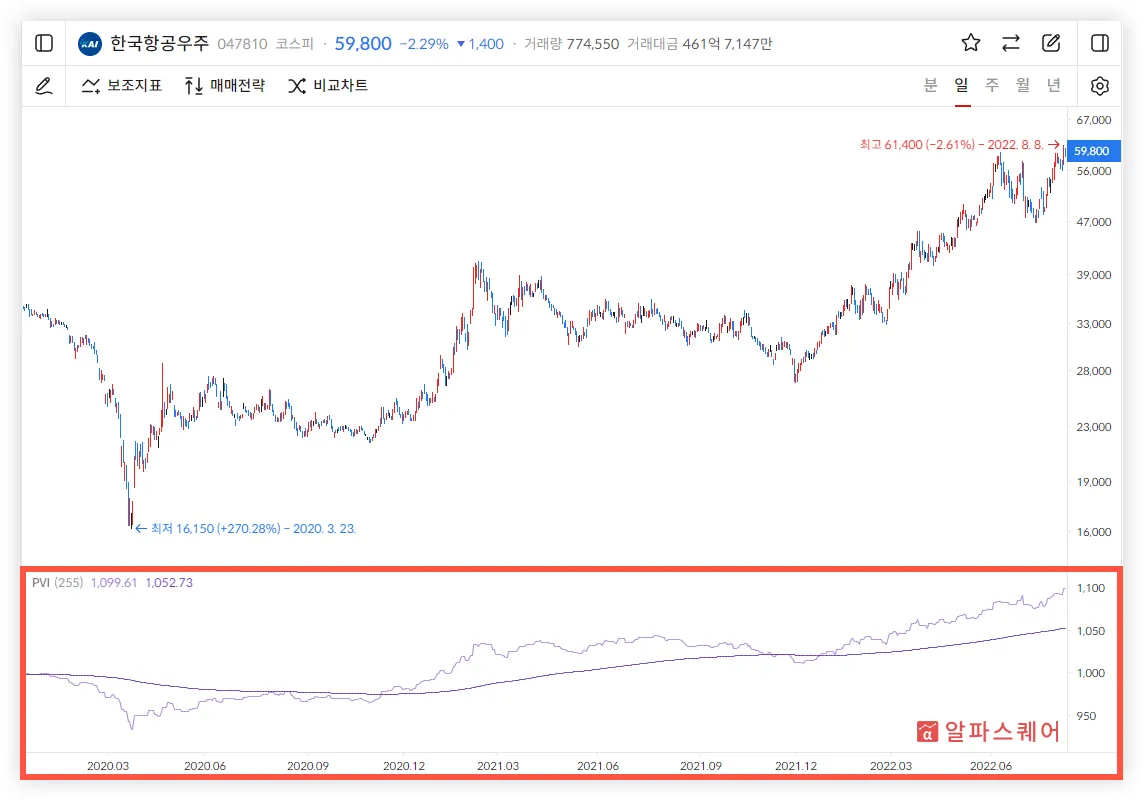 💡 시장이 급변하며 주가가 하락하면 PVI는 감소하고 시장이 과열되면 PVI는 증가한다.