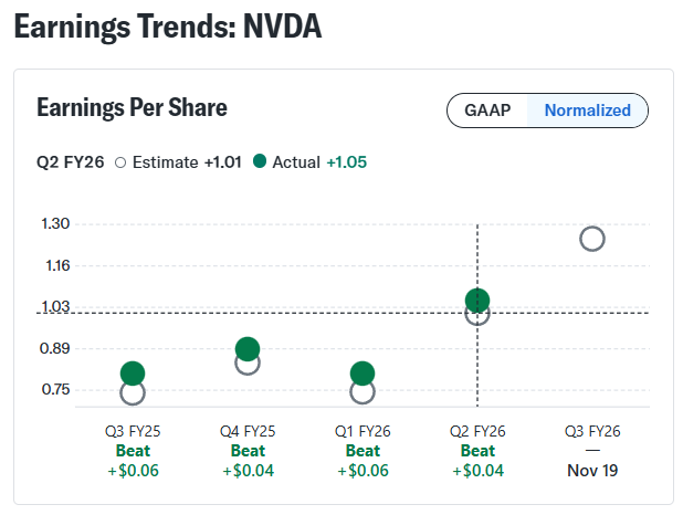 엔비디아는 11월 19일(수) 장 마감 후 FQ3 ‘26 실적을 발표합니다. 시장 예상치는 다음과 같습니다.