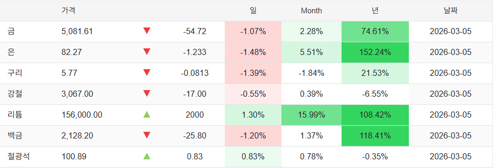 금 5078 (-1.09%)