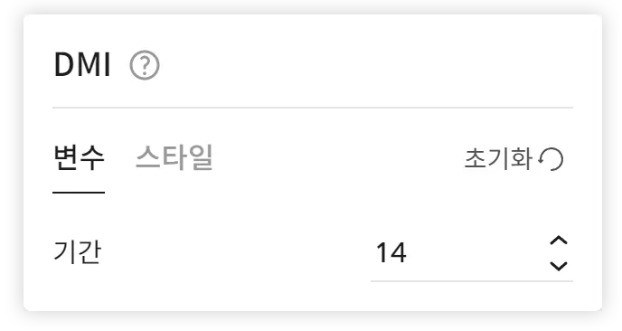 •기간: +DI와 -DI의 기간을 결정하는 값으로, N에 해당한다. 기본값은 14