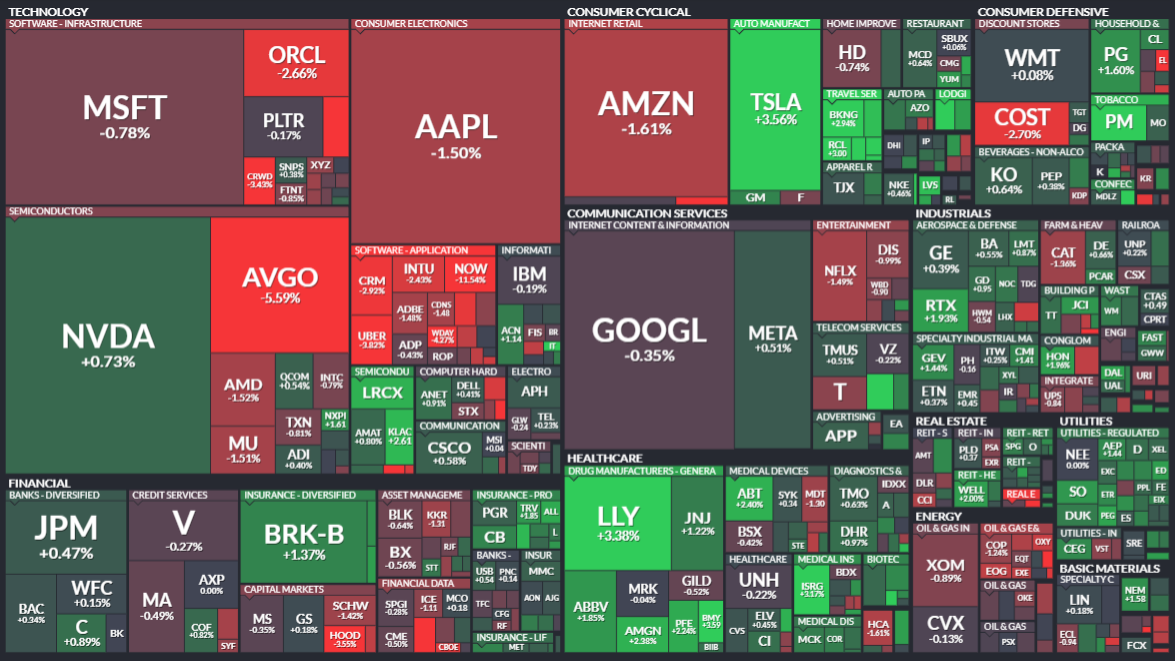 오라클,브로드컴을 제외한 종목의 하락은 제한적