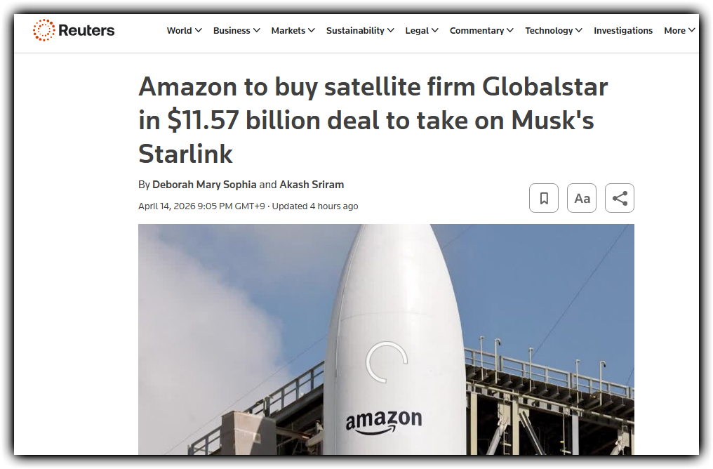 https://www.reuters.com/business/media-telecom/amazon-signs-1157-billion-deal-satellite-firm-globalstar-challenge-starlink-2026-04-14/