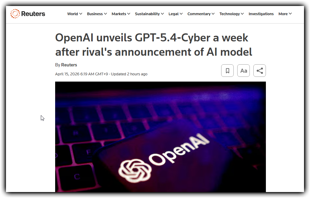 ✔ 오픈AI, 사이버보안 특화 GPT-5.4-Cyber 공개