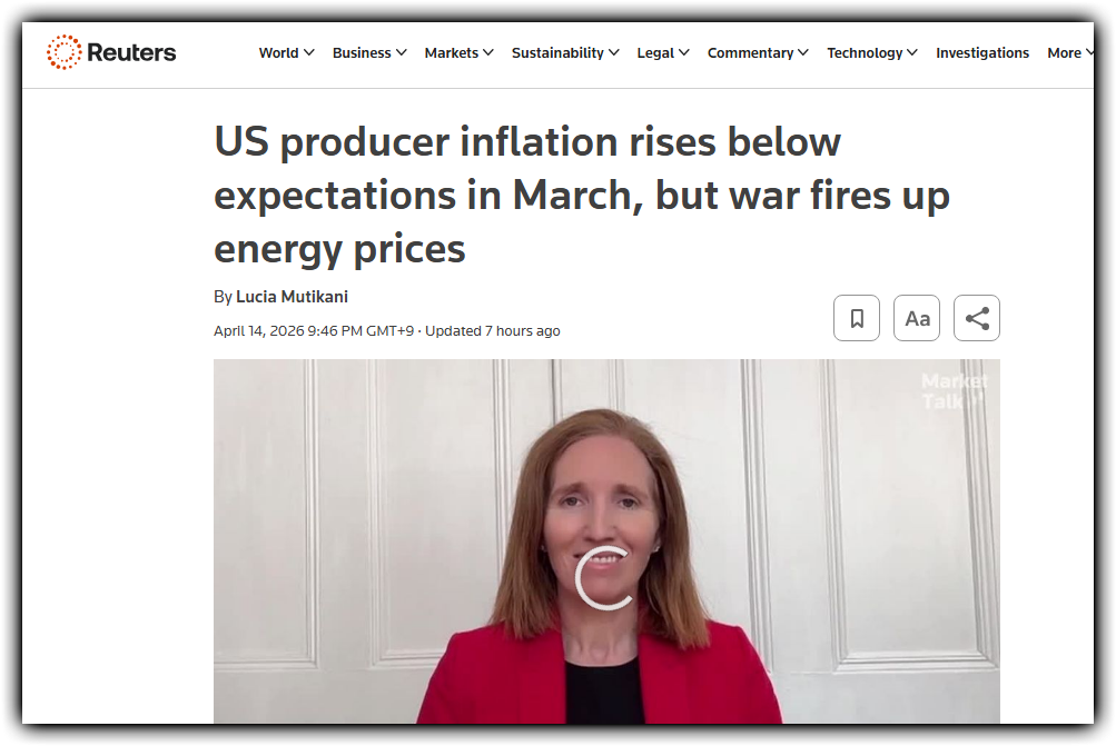 - 미국 3월 생산자물가는 예상보다 낮게 나오며 전반적 물가 압력 완화 신호를 줬습니다.
