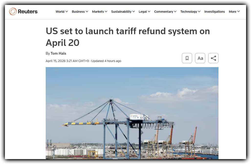 - 미국 정부는 불법 판결을 받은 관세에 대해 수입업체 환급을 처리할 시스템을 4월 20일 가동할 예정입니다.