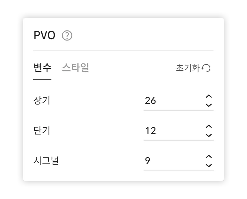 •시그널(K) : PVO의 지수이동평균인 시그널 계산을 위해 사용되는 값이다. 기본값은 9