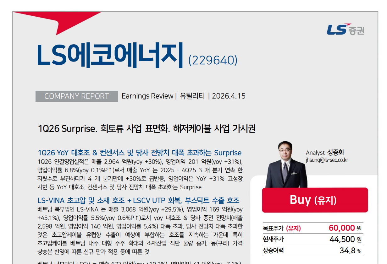 LS에코에너지 : LS증권 Analyst 성종화