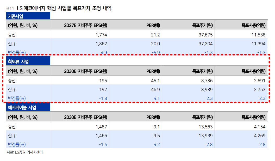 특히 해저케이블 사업은 보고서에서 기존 전력케이블 중 수익성이 가장 높은 초고압 케이블보다도 더 높은 수익성을 기대할 수 있다고 적시했다. 2030년 첫 매출이 발생할 경우 영업이익률 20% 중반도 가능하다고 본다. 즉, 물량 확대뿐 아니라 믹스 개선이 미래 이익률을 올리는 구조다. 희토류 금속 사업 역시 아직은 계획 단계이지만, 중국 외 지역 공급망 재편이라는 큰 흐름을 타고 있어 중장기 옵션 가치가 있다.