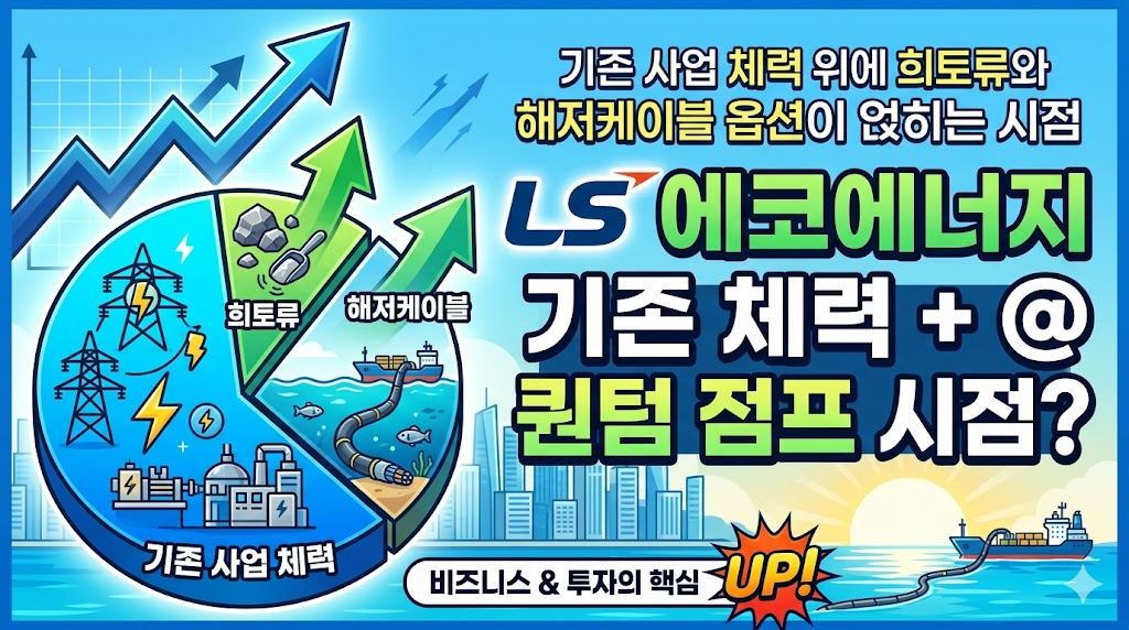 LS에코에너지 는 지금 “좋은 1분기 실적이 나온 회사”에 그치지 않는다. 이미 돈을 버는 본업 위에, 향후 기업가치를 바꿀 수 있는 신규 옵션이 두 개 얹히고 있다. 결국 투자 포인트는 단순하다. 기존 사업의 이익 체력이 계속 유지되는 가운데, 희토류와 해저케이블이 실제 프로젝트와 숫자로 이어지는지 보면 된다. 그 전환이 확인되면 지금의 밸류에이션은 오히려 덜 비싸게 보일 수 있다.