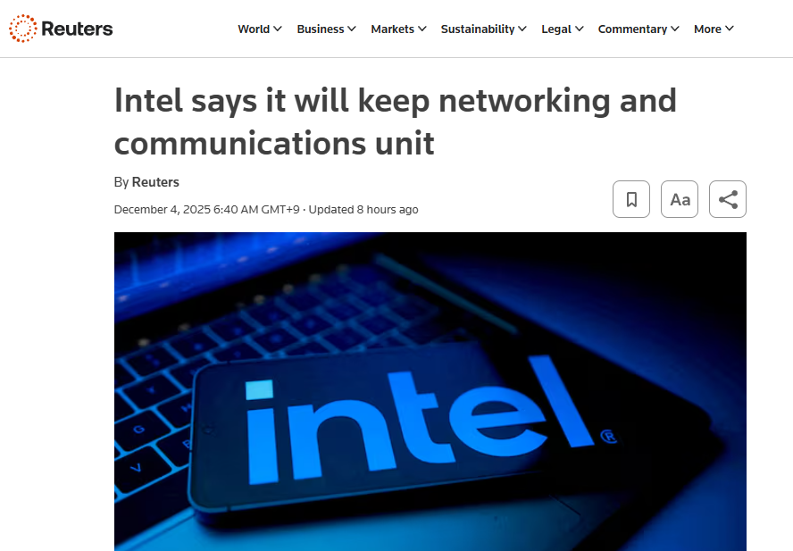 Source : https://www.reuters.com/business/intel-keep-networking-communications-unit-2025-12-03/