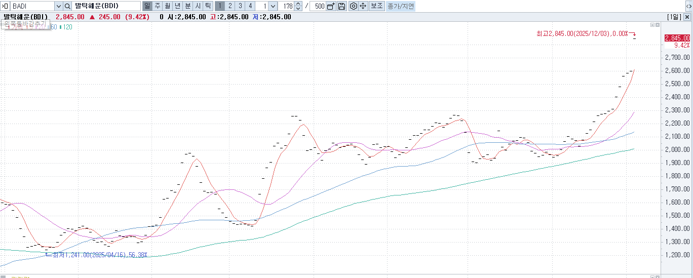 구리 가격 상승 지속, BDI지수 상승 지속