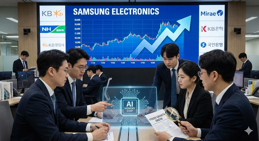 유진투자증권은 21만 원, SK증권은 26만 원으로 삼성전자 의 목표가를 대폭 상향 조정하며 강력한 '매수' 신호를 보내고 있습니다. 각 증권사가 중요하게 본 포인트는 조금씩 다르지만, 결론은 하나로 수렴합니다.