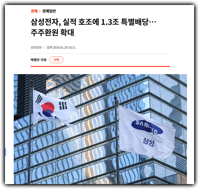삼성전자, 실적 호조에 1.3조원 특별배당 / 출처 : 중알일보