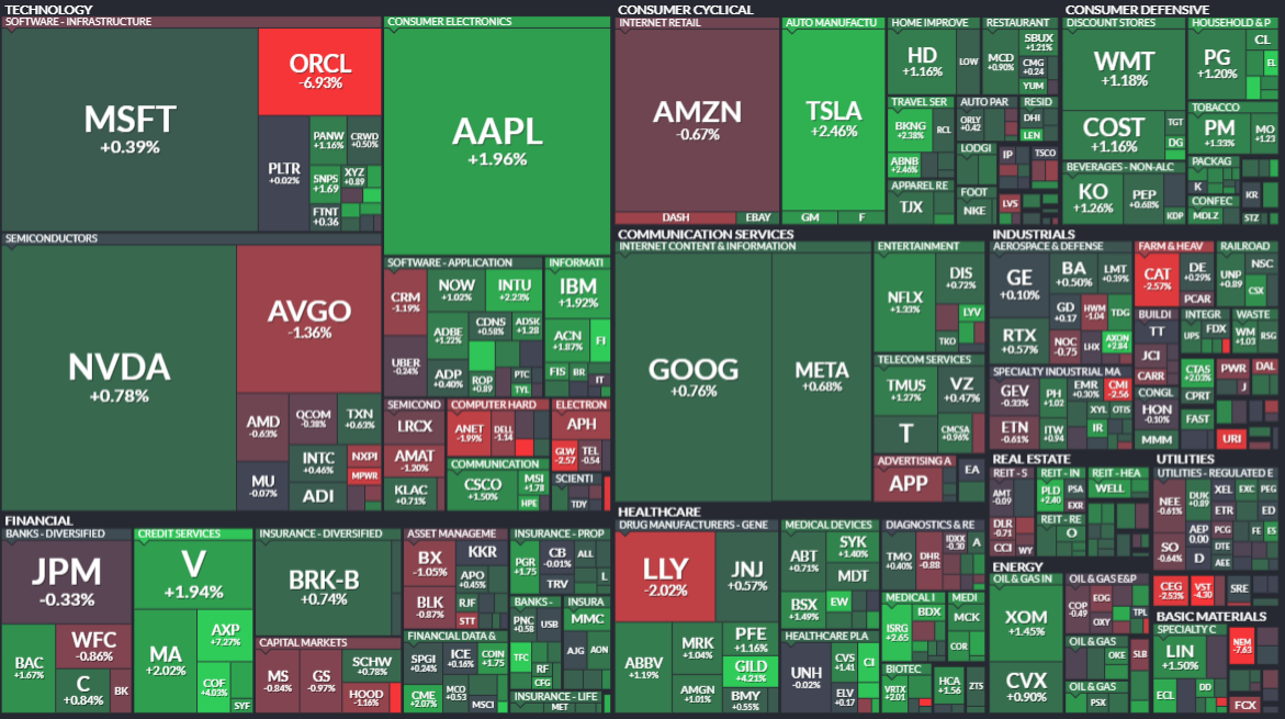 아메리칸익스프레스 실적호조로 7% 급등, 오라클 AI수요우려로 7% 하락