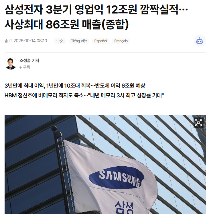 즉, 반도체는 가격 급등으로 업사이클에 진입하였고, 스마트폰은 ‘폴드7 흥행’으로 턴어라운드에 성공한 점이 이번 삼성전자 어닝서프라이즈의 배경으로 보여집니다.