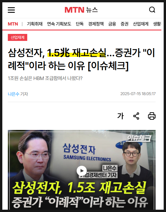 삼성은 엔비디아 퀄테스트 통과를 가정하고 HBM을 생산했지만, 2분기까지 통과하지 못하면서 해당 재고를 ‘손실’로 처리했습니다.