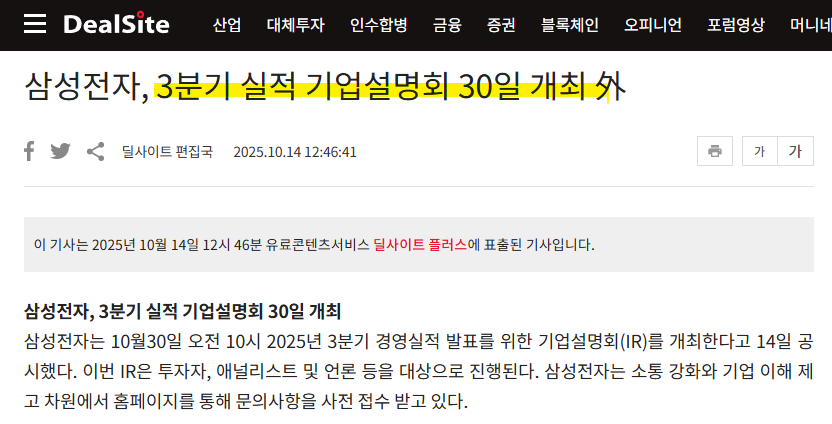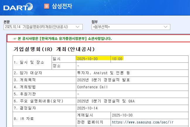 자세한 내용은 10월 30일 오전 10시 공개될 삼성전자 IR 자료에서 사업부문별로 확인 가능하니,