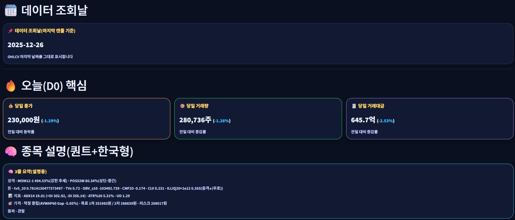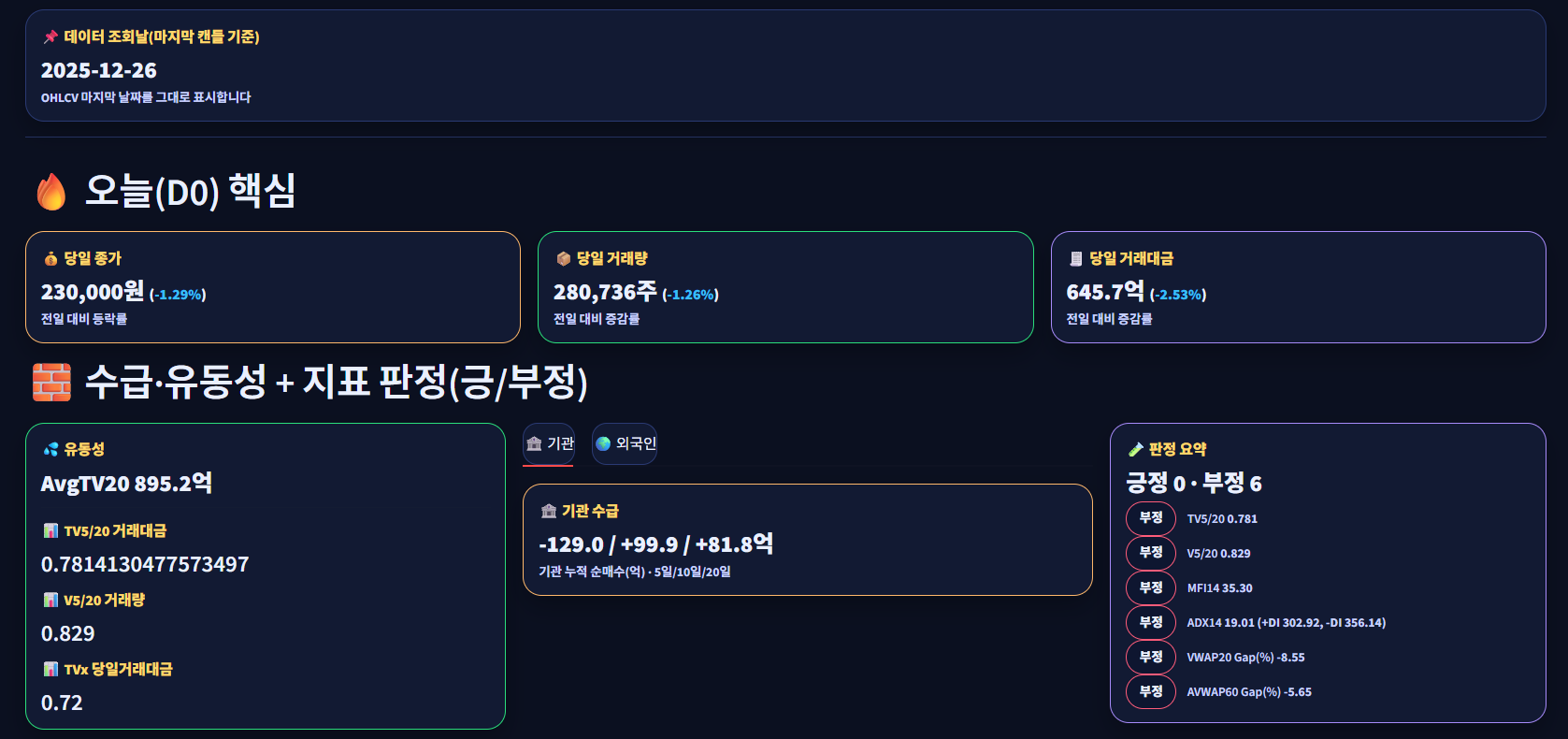 거래대금 **645.7억(-2.53%)**인데, AvgTV20 895.2억 대비 TVx 0.72로 평균보다 돈이 덜 들어온 상태입니다.