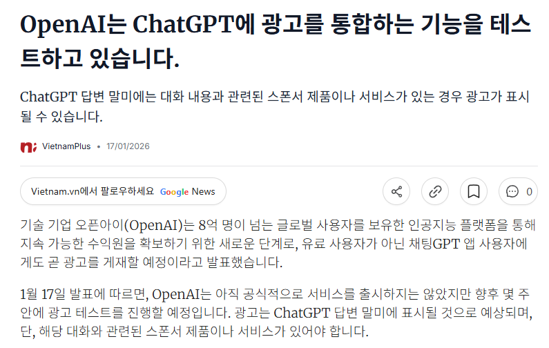 OpenAI의 광고 도입은 구글의 핵심 수익 모델인 '검색 광고'를 정조준한 공격적인 행보입니다.