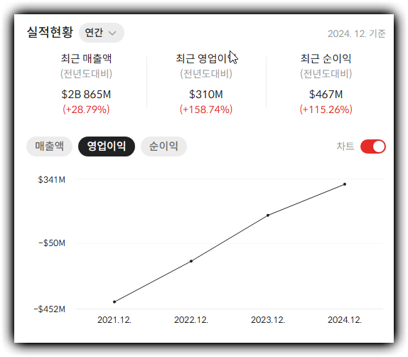 PSR(주가매출비율): 약 50배