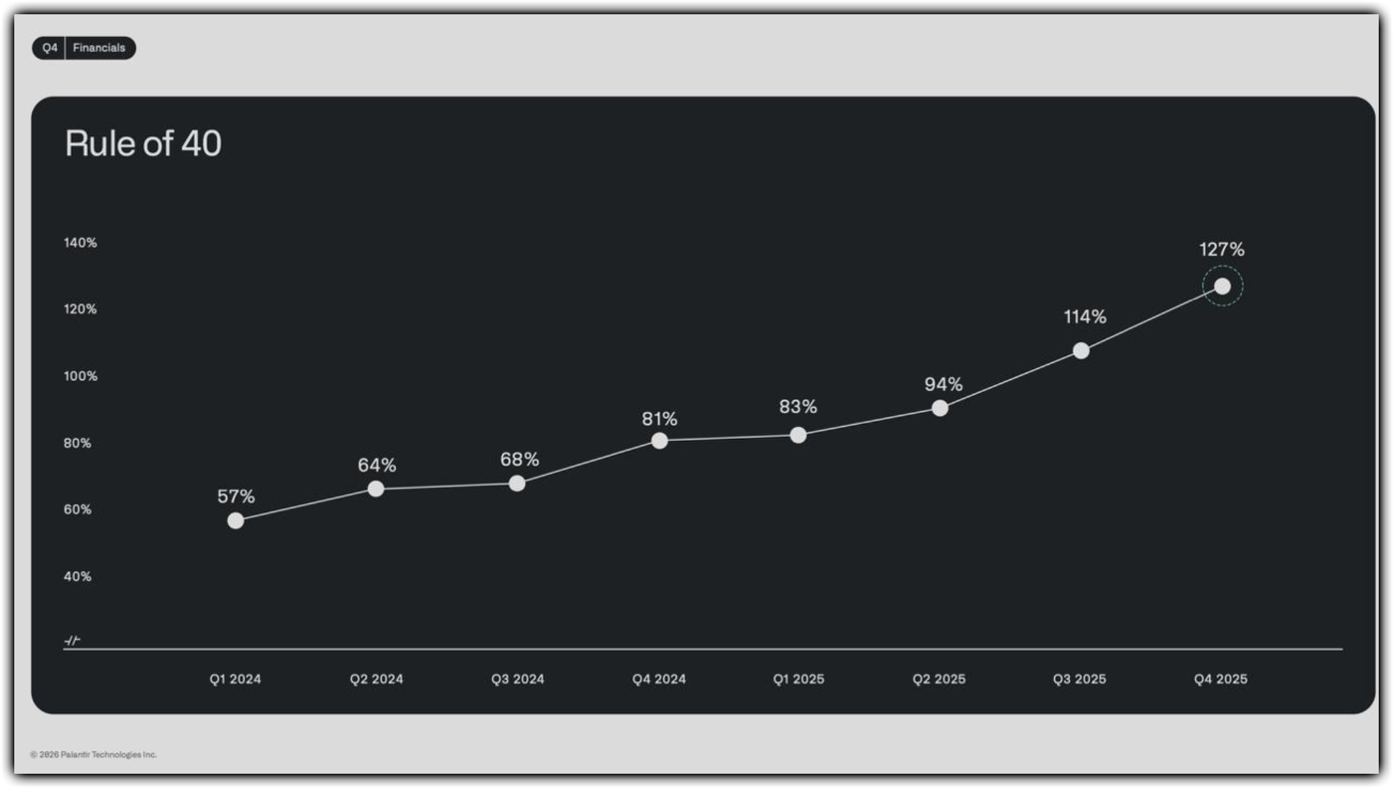 팔란티어 테크놀로지스 Rule of 40 127%달성! 출처 : 도pb의 생존투자 telegram