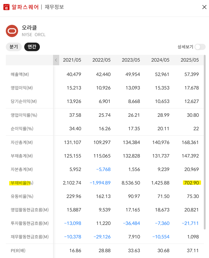 오라클 전망을 어둡게 만드는 가장 직접적인 지표는 바로 회사의 재무 건전성, 그중에서도 현금흐름의 악화입니다.