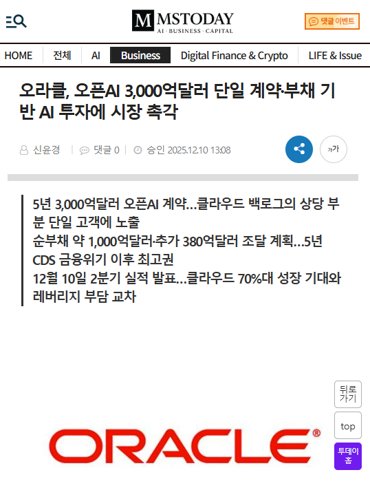 주식시장에는 수많은 '장밋빛 미래'와 그 뒤에 숨겨진 '거품의 붕괴'가 있었습니다. 최근 AI(인공지능) 열풍의 중심에 서 있던 오라클 (Oracle)의 행보를 보며, 과거 닷컴 버블 당시의 기시감을 느끼는 건 저만의 생각일까요? 오늘은 냉정하게 데이터와 숫자로 오라클 전망을 분석해 보려고 합니다.