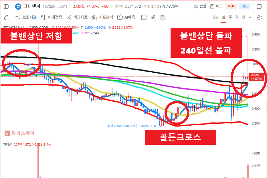■ 에셋마스터의 [1] 돌고래차트는 매매기준. - 60일선을 이탈하고 급격하게 하락하던 주가가(가격조정,기간조정) 하락을 멈추고 캔들이 5일선을 돌파 후 안착하고, 5일선은 20일선을 골든크로스 해주어야 합니다. 다음날 혹은 그다음 날 5일선 지지선에서 매수 걸고 기다리는데, 이때 60일선 이탈 이후 급격한 하락은 신뢰도가 높습니다. - 참고, 20일선 이탈 시 손절잡고 진행하는 기준입니다. #돌고래차트 #주식투자 #주식공부 #주식공부방 ■ 에셋마스터의 [2] 볼린져밴드 돌고래차트 매매기준. 볼린져밴드 기간을 74로 설정하고, 캔들이 설정한 볼린져밴드 상단선을 돌파해 주어야 합니다. 이때 5일선이 볼린져밴드 상단선을 골든크로스 해주어야 신뢰도가 높습니다. 5일선이 볼밴상단선을 돌파하고 5일선 지지선에서 매수 기준을 잡습니다. -참고. 수익 중이면 5일선이탈시 비중축소 볼밴이탈시 올매도 기준입니다. 손실 중이면 볼밴상단선 이탈 시 손절선을 잡습니다. #볼밴돌고래차트 #주식공부방 #주린이공부 ■ 돌고래차트 매매는 항상 분할매수(2회~3회)를 원칙으로 합니다. 주식공부방 기준은 1차매수 2차매수로 나눠서하는 투자를 원칙으로 하며, 1차 돌고래차트 만들고, 이탈하면 2차매수도 돌고래차트를 재차 만들때 재투입합니다. #주식투자시 분할매수를 못하면 주식에서 실패할 수 밖에 없습니다. ■ 수익금은 꼭 인출해서 별도의 CMA계좌로 옮겨두세요.. 이후 폭락장(개인들의 반대매매가 나오는시점)이 오면 그때 재투자를 원칙으로 합니다. ■ 본 내용은 에셋마스터가 직접 #주식공부하는 내용을 공유하여 올려드리는 것입니다. ["일정한 대가를 받고 주식에 대한 종목 추천이나 1:1 리딩은 절대 하지 않습니다".] 주식투자에 대한 교육 차원이며 종목 추천을 드리는 것이 아님을 꼭 밝혀드리고, 주식투자에 대한 수익이나 손실은 본인의 몫임을 말씀드립니다. ■ #주식투자에 앞서 #주식공부는 증권사의 모의투자로 본인의 실력을 향상시키는 것을 먼저 권유 드립니다. #디티앤씨 #차트분석 #기술적분석 전자 및 전기제품의 전자파규격, 전기안전 규격, 전자파인체흡수율 구격 및 통신 규격 등에 대한 인증서비스 용역 사업을 영위하고 있는 시가총액 시가총액 326억원의 코스닥 상장기업입니다. 볼린져밴드 상단선의 저항선에서 돌파하지 못하고 가격조정을 받으면서 하락하는 상황에서 역배열로 조정을 받고 있습니다. 60일선을 이탈하면서 역배열로 하락하던 주가는 하락을 멈추고 5일선이 20일선을 골든크로스하고 단기 반등하면서 볼린져밴드 상단선까지 상승이후 눌림이후 재돌파하면서 볼린져밴드 상단선을 돌파하는 모습을 보여주고 있습니다. 매수밴드 5일선과 볼린져밴드 상단선의 지지선에서 흐름지켜보고 5일선 이탈시 손절선 잡아보겠습니다. #디티앤씨 #재무분석 #기본적분석 디티앤씨의 매출액은 2022년 1105억원에서 2024년 1119억원으로 증가하고 있으며, 당기순이익은 2022년 28억원에서 2024년 29억원으로 소폭 상승하고 있습니다. 부채비율은 2022년 74%에서 2024년 118%로 증가하고 있으며, 유보율은 2022년 1322%에서 2024년 1145억원으로 증가하고 있습니다. #디티앤씨 #시장이슈및테마 #원전관련주 #드론관련주 #한동훈관련주로 엮여 있는 상황에서 이슈받는지 흐름지켜보겠습니다. #씨에스윈드 #차트분석 #기술적분석 풍력타워 생산 및 타워내부 부품, 베어링 생산 등 풍력타워 및 부품 생산사업을 영위하고 있는 시가총액 2조 3615억원의 코스피 상장기업입니다. 급격하게 가격조정을 받고 하락하던 주가는 5일선이 20일선을 골든크로스하고 단기 급등하면서 240일선을 돌파하고 추가 상승을 못하고 다중고점을 만들고 240일선 이탈이후 조정을 받고 있습니다. 다중고점이후 가격조정을 받으면서 하락하던 주가는 쌍바닥을 만들고 240일선을 돌파하고 추세 우상향 시켜주면서 볼린져밴드 상단선 돌파하고 20일선 지지이후 N자형 반등하는 모습을 보여주고 있습니다. 매수밴드 5일선과 볼린져밴드 상단선의 지지선에서 흐름지켜보고 볼린져밴드 상단선 이탈시 손절선 잡아보겠습니다. #씨에스윈드 #재무분석 #기본적분석 씨에스윈드의 매출액은 2022년 1조 3749억원에서 2024년 3조 725억원으로 증가하고 있으며, 당기순이익은 2022년 -69억원에서 2024년 1437억원으로 흑자전환해 주었습니다. 부채비율은 2022년 92%에서 2024년 200%로 증가하고 있으며, 유보율은 2022년 4038%에서 2024년 4820%로 증가하고 있습니다. #씨에스윈드 #시장이슈및테마 #재생에너지관련주 #그린뉴딜관련주 #풍력관련주로 엮여 있는 상황에서 이슈받는지 흐름지켜보겠습니다. #네이버에서 에셋마스터 #돌고래차트 #야구공주식이론 #주식공부방 #볼린져밴드설정 #5일선매매기법