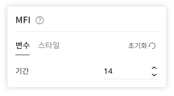 •기간: MFI를 계산하기 위해 사용되는 값으로, N에 해당한다. 기본값은 5