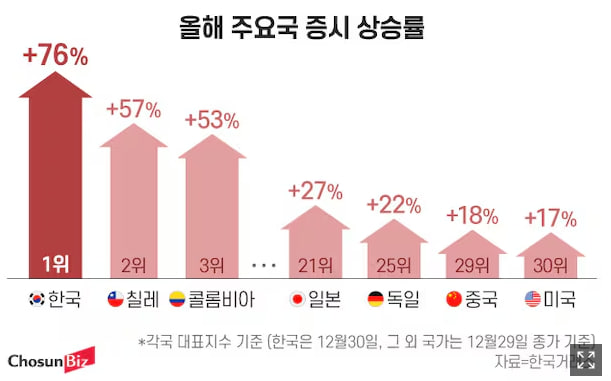 24년 꼴찌수준의 증시성적과 비교하면 엄청난 발전을 이룬 모습!