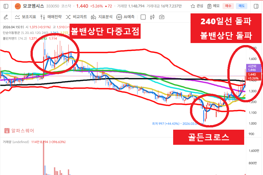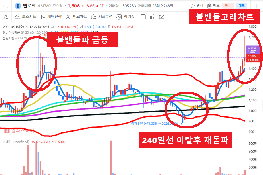 ■ 에셋마스터의 [1] 돌고래차트는 매매기준. - 60일선을 이탈하고 급격하게 하락하던 주가가(가격조정,기간조정) 하락을 멈추고 캔들이 5일선을 돌파 후 안착하고, 5일선은 20일선을 골든크로스 해주어야 합니다. 다음날 혹은 그다음 날 5일선 지지선에서 매수 걸고 기다리는데, 이때 60일선 이탈 이후 급격한 하락은 신뢰도가 높습니다. - 참고, 20일선 이탈 시 손절잡고 진행하는 기준입니다. #돌고래차트 #주식투자 #주식공부 #주식공부방 ■ 에셋마스터의 [2] 볼린져밴드 돌고래차트 매매기준. 볼린져밴드 기간을 74로 설정하고, 캔들이 설정한 볼린져밴드 상단선을 돌파해 주어야 합니다. 이때 5일선이 볼린져밴드 상단선을 골든크로스 해주어야 신뢰도가 높습니다. 5일선이 볼밴상단선을 돌파하고 5일선 지지선에서 매수 기준을 잡습니다. -참고. 수익 중이면 5일선이탈시 비중축소 볼밴이탈시 올매도 기준입니다. 손실 중이면 볼밴상단선 이탈 시 손절선을 잡습니다. #볼밴돌고래차트 #주식공부방 #주린이공부 ■ 돌고래차트 매매는 항상 분할매수(2회~3회)를 원칙으로 합니다. 주식공부방 기준은 1차매수 2차매수로 나눠서하는 투자를 원칙으로 하며, 1차 돌고래차트 만들고, 이탈하면 2차매수도 돌고래차트를 재차 만들때 재투입합니다. #주식투자시 분할매수를 못하면 주식에서 실패할 수 밖에 없습니다. ■ 수익금은 꼭 인출해서 별도의 CMA계좌로 옮겨두세요.. 이후 폭락장(개인들의 반대매매가 나오는시점)이 오면 그때 재투자를 원칙으로 합니다. ■ 본 내용은 에셋마스터가 직접 #주식공부하는 내용을 공유하여 올려드리는 것입니다. ["일정한 대가를 받고 주식에 대한 종목 추천이나 1:1 리딩은 절대 하지 않습니다".] 주식투자에 대한 교육 차원이며 종목 추천을 드리는 것이 아님을 꼭 밝혀드리고, 주식투자에 대한 수익이나 손실은 본인의 몫임을 말씀드립니다. ■ #주식투자에 앞서 #주식공부는 증권사의 모의투자로 본인의 실력을 향상시키는 것을 먼저 권유 드립니다. #벨로프 #차트분석 #기술적분석 통합 정보보안 전문기업으로 네트워크, 정보보호 서비스를 제공하고 있으며, 백본 스위치와 차세대 방화벽 등의 제품을 다루고 있는 시가총액 297억원의 코스닥 상장기업입니다. 볼린져밴드 상단선을 돌파하면서 급등시세를 보여주던 주가는 5일선을 이탈하고 볼린져밴드 상단선을 이탈하면서 단기 조정을 받으면서 하락하는 모습을 보여주고 있습니다. 급등이후 조정을 받으면서 하락하던 주가는 240일선의 지지선을 이탈이후 재돌파하는 모습을 보여주고 있으며 현재 볼린져밴드 상단선을 돌파하는 상황입니다. 매수밴드 5일선과 볼린져밴드 상단선의 지지선에서 흐름지켜보고 볼린져밴드 상단선 이탈시 손절선 잡아보겠습니다. #벨로크 #재무분석 #기본적분석 벨로크의 매출액은 2023년 264억원에서 2025년 354억원으로 증가하고 있으며, 당기순이익은 2023년 -46억원의 적자에서 2025년 21억원의 흑자전환해 주고 있습니다. 부채비율은 2023년 42%에서 2025년 30%로 감소하고 있으며, 유보율은 2023년 1185%에서 2025년 1247%로 증가하고 있습니다. #벨로크 #시장이슈및테마 #인터넷보안관련주 #정보보호관련주 #방화벽관련주로 엮여 있는 상황에서 이슈받는지 흐름지켜보겠습니다. #모코엠시스 #차트분석 #기술적분석 보안솔루션, APM솔루션을 개발 및 판매하고 있으며 마이데이터사업, 핀테크, 스마트서비스, 지능형 정부, 챗GPT등 디지털트랜스포메이션 분야까지 섭력하고 있는 시가총액 354억원의 코스닥 상장기업입니다. 단기 급등시세를 보여주면서 볼린져밴드 상단선을 돌파하는 상황에서 다중 고점을 만들고 5일선은 볼린져밴드 상단선을 돌파하지 못하고 20일선 이탈이후 조정을 받고 있습니다. 20일선이탈이후 60일선과 240일선의 장기이평선을 이탈하면서 역배열로 하락하던 주가는 5일선이 20일선을 골든크로스하고 2일선과 20일선이 60일선을 골든크로스하면서 정배열차트를 만들고 현재 240일선과 볼린져밴드 상단선을 돌파하고 있습니다. 매수밴드 5일선과 볼린져밴드 상단선의 지지선에서 흐름지켜보고 볼린져밴드 상단선 이탈시 손절선 잡아보겠습니다. #모코엠시스 #재무분석 #기본적분석 모코엠시스의 매출액은 2023년 246억원에서 2025년 300억원으로 증가하고 있으며, 당기순이익은 2023년 11억원에서 2025년 21억원으로 증가하고 있습니다. 부채비율은 2023년 42%에서 2025년 37%로 감소하고 있으며, 유보율은 2023년 801%에서 2025년 960%로 증가하고 있습니다. #모코엠시스 #시장이슈및테마 #AI빅데이터관련주 #클라우드관련주 #보안솔루션관련주로 엮여 있는상황에서 이슈받는지 흐름지켜보겠습니다. #네이버에서 에셋마스터 #돌고래차트 #야구공주식이론 #주식공부방 #볼린져밴드설정 #5일선매매기법
