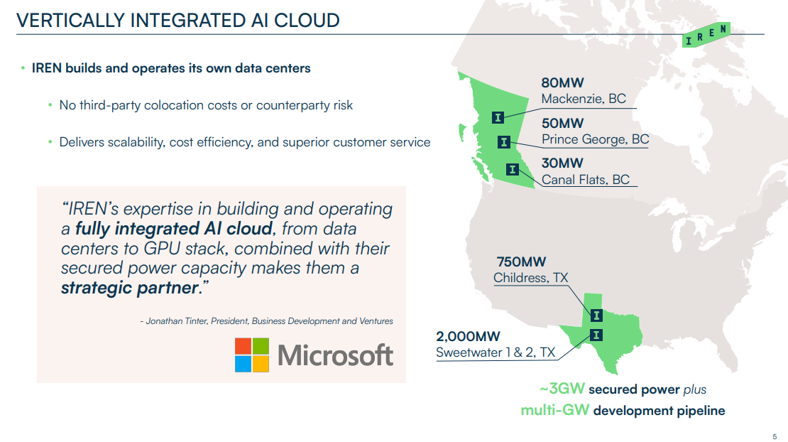 다른 데이터센터 사업자인 Applied Digital(APLD) 같은 데는 전력 인허가·증설 때문에 성장 가이드가 뒤로 밀리는 이슈가 있는데, 아이렌은 “우린 이미 3GW 전력 중 아직 16%만 쓰고 있다”는 언급으로 다른 데이터 센터와 달리 전력 공급 불확실성은 걱정 안해도 된다고 어필.