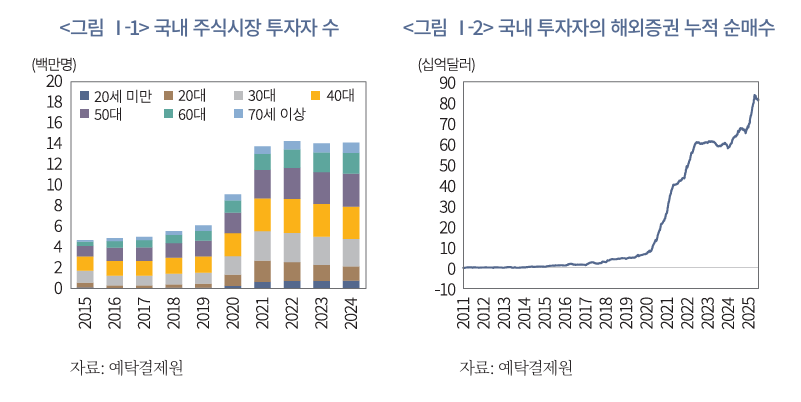 - 국내 주식시장 투자자는 2020년, 2021년에 급격히 증가한 후 2024년까지 정체하였습니다.