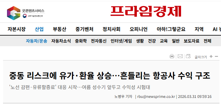 대한항공 : 유가 충격보다 더 중요한 것은 전쟁 리스크 해소