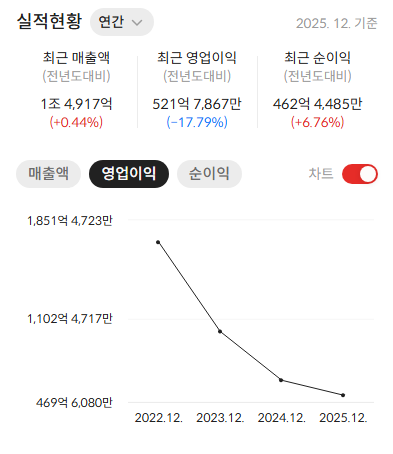 | 순이익(십억원) | 46.2 | 80.8 | 90.3 | 95.0 |
