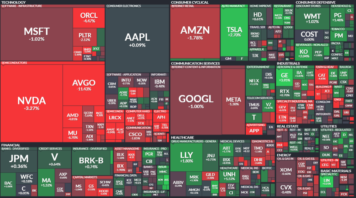 브로드컴의 AI마진 축소발언과 오라클의 데이터센터 건설지연 보도로 테크섹터가 급락
