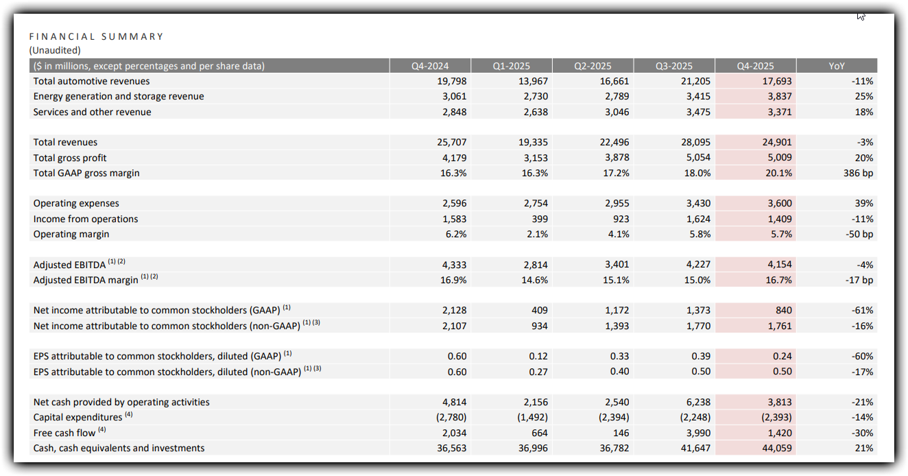 실제로 최근 실적 지표를 살펴보면 이러한 체질 개선의 징후가 뚜렷하게 나타나고 있습니다. 2025 회계연도 기준 자동차 부문의 매출은 전년 대비 약 9.8% 감소한 695억 달러 수준에 머물렀지만, 에너지 저장 및 태양광 부문은 26.6%라는 가파른 성장세를 보이며 127억 달러의 매출을 기록했습니다. 이는 테슬라 의 수익 구조가 차량 판매라는 단일 엔진에서 에너지와 서비스, 나아가 인공지능 기반의 고부가가치 사업으로 다각화되고 있음을 시사하는 중요한 대목입니다.