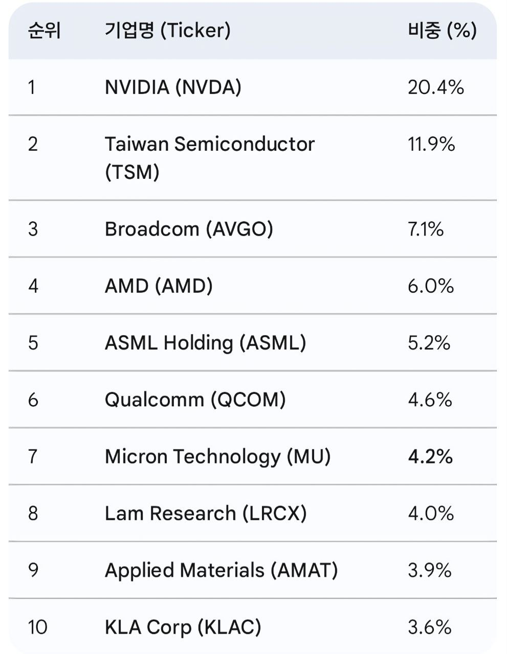 - (위 두번째 사진) SMH 편입비중 상위 종목리스트에서 닉스보다 시총이 작은 퀄컴, 마이크론이 6, 7위로 각각 4% 정도의 비중(SMH AUM은 약 $40B)