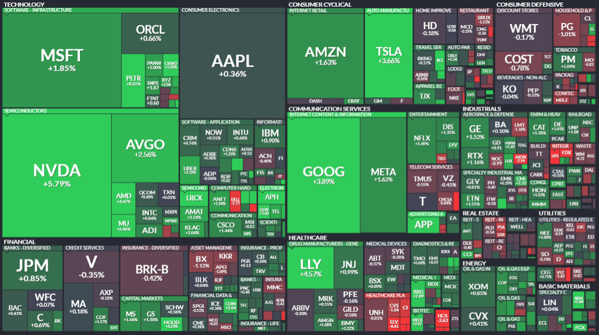 기술 대형주는 5월 이후 최대 상승폭 기록