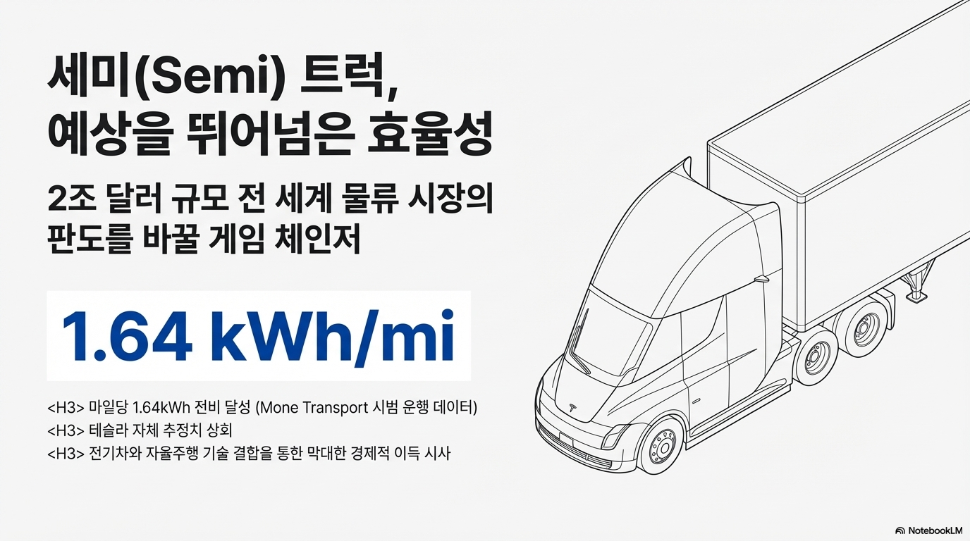 테슬라 세미 트럭의 효율성이 시장 예상치를 크게 상회하며 물류 시장의 판도를 바꿀 실질적인 가능성을 입증한 상태입니다. 그동안 배터리 공급 제약과 생산 우선순위 밀림으로 인해 투자자들의 관심 밖으로 밀려나 있던 세미 트럭은 최근 텍사스 기반의 물류 기업인 모네 트랜스포트(Mone Transport)의 시범 운행을 통해 그 가치를 증명했습니다. 실제 운행 결과 마일당 1.64kWh라는 뛰어난 효율성을 기록했는데, 이는 테슬라가 애초에 제시했던 추정치보다도 높은 수준입니다.