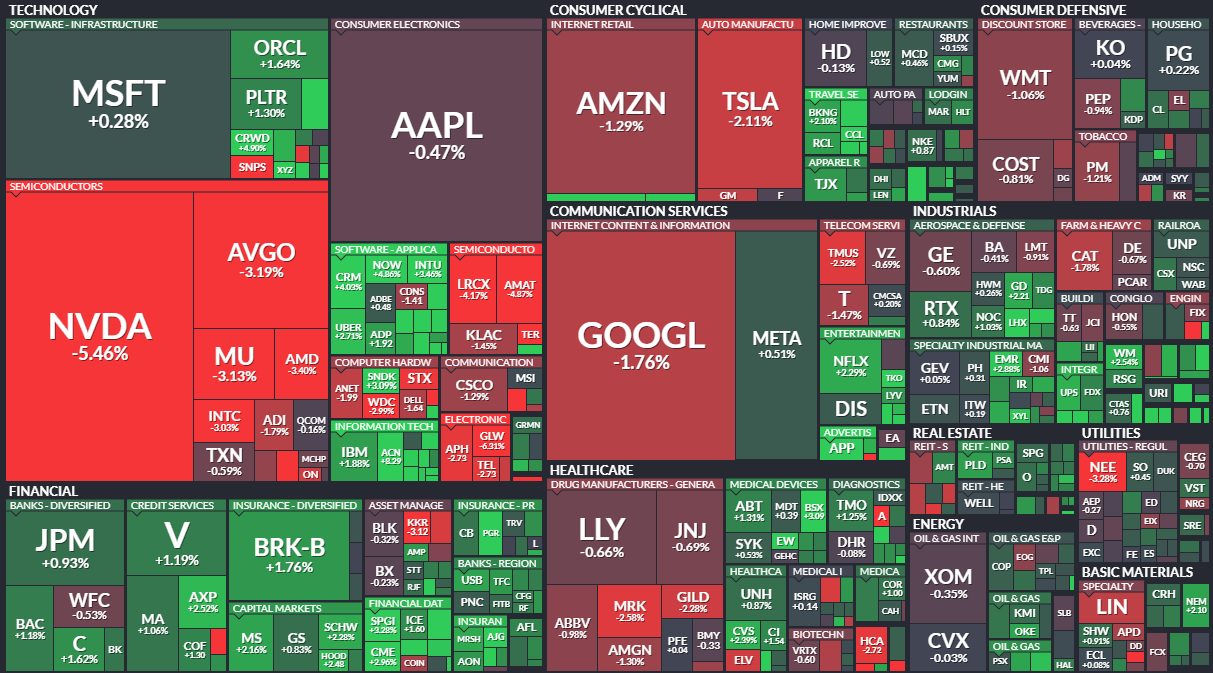 나스닥은 엔비디아 영향으로 1% 넘게 하락한 가운데