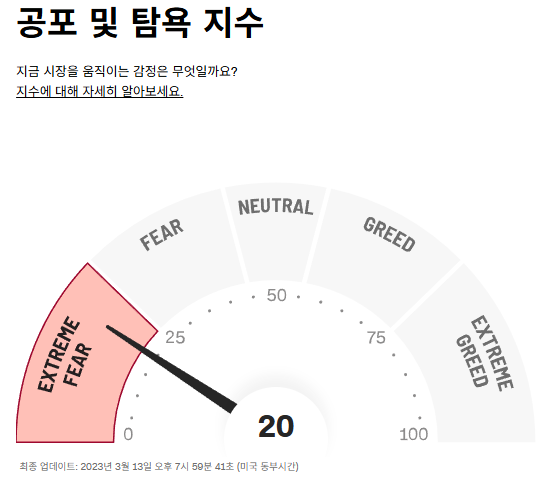 CNN 공포탐욕지수는 극도공포구간으로 진입하며 부진
