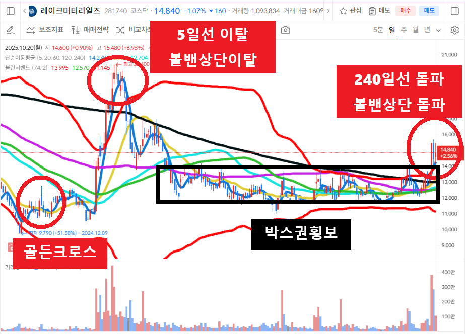 ■ 에셋마스터의 [1] 돌고래차트는 매매기준. - 60일선을 이탈하고 급격하게 하락하던 주가가(가격조정,기간조정) 하락을 멈추고 캔들이 5일선을 돌파 후 안착하고, 5일선은 20일선을 골든크로스 해주어야 합니다. 다음날 혹은 그다음 날 5일선 지지선에서 매수 걸고 기다리는데, 이때 60일선 이탈 이후 급격한 하락은 신뢰도가 높습니다. - 참고, 20일선 이탈 시 손절잡고 진행하는 기준입니다. #돌고래차트 #주식투자 #주식공부 #주식공부방 ■ 에셋마스터의 [2] 볼린져밴드 돌고래차트 매매기준. 볼린져밴드 기간을 69로 설정하고, 캔들이 설정한 볼린져밴드 상단선을 돌파해 주어야 합니다. 이때 5일선이 볼린져밴드 상단선을 골든크로스 해주어야 신뢰도가 높습니다. 5일선이 볼밴상단선을 돌파하고 5일선 지지선에서 매수 기준을 잡습니다. -참고. 수익 중이면 5일선이탈시 비중축소 볼밴이탈시 올매도 기준입니다. 손실 중이면 볼밴상단선 이탈 시 손절선을 잡습니다. #볼밴돌고래차트 #주식공부방 #주린이공부 ■ 돌고래차트 매매는 항상 분할매수(2회~3회)를 원칙으로 합니다. 주식공부방 기준은 1차매수 2차매수로 나눠서하는 투자를 원칙으로 하며, 1차 돌고래차트 만들고, 이탈하면 2차매수도 돌고래차트를 재차 만들때 재투입합니다. #주식투자시 분할매수를 못하면 주식에서 실패할 수 밖에 없습니다. ■ 수익금은 꼭 인출해서 별도의 CMA계좌로 옮겨두세요.. 이후 폭락장(개인들의 반대매매가 나오는시점)이 오면 그때 재투자를 원칙으로 합니다. ■ 본 내용은 에셋마스터가 직접 #주식공부하는 내용을 공유하여 올려드리는 것입니다. ["일정한 대가를 받고 주식에 대한 종목 추천이나 1:1 리딩은 절대 하지 않습니다".] 주식투자에 대한 교육 차원이며 종목 추천을 드리는 것이 아님을 꼭 밝혀드리고, 주식투자에 대한 수익이나 손실은 본인의 몫임을 말씀드립니다. ■ #주식투자에 앞서 #주식공부는 증권사의 모의투자로 본인의 실력을 향상시키는 것을 먼저 권유 드립니다. #레이크머티리얼즈 #차트분석 #기술적분석 유기금속화합물의 연구, 제조 및 판매 사업을 영위하고 있으며, 주요 매출은 반도체 소재 부문에서 발생하고있는 시가총액 9695억원의 코스닥 상장기업입니다. 240일선을 기준으로 엘리어트 5파동으로 급등시세를 보여주면서 상승하던 주가는 급등을 멈추고 볼린져밴드 상단선을 이탈하면서 역배열 하락추세로 급락하는 모습을 보여주고 있습니다. 하락하던 주가는 하락을 멈추고 5일선이 20일선을 골든크로스하고 단기 급등시세를 보여주던 주가는 전고점의 저항선에서 5일선과 볼린져밴드 상단선을 이탈하고 바닥횡보를 보여주던 주가는 박스권돌파하고 볼린져밴드 상단선까지 돌파하는 모습을 보여주고 있습니다. 매수밴드 5일선과 볼린져밴드 상단선의 지지선에서 흐름 지켜보고 볼린져밴드 상단선 이탈시 손절선 잡아보겠습니다. #레이크머티리얼즈 #재무분석 #기본적분석 레이크머티리얼즈의 매출액은 2022년 1315억원에서 2024년 1387억원으로 증가하고 있으며, 당기순이익은 2022년 272억원에서 2024년 210억원으로 감소하고 있습니다. 부채비율은 2022년 146%에서 2024년 167%로 증가하고 있으며, 유보율은 2022년 1209%에서 2024년 1880%로 증가하고 있습니다. #레이크머티리얼즈 #시장이슈및테마 #태양광관련주 #반도체재료관련주 #LED관련주 #전고체배터리관련주로 엮여 있는 상황에서 이슈받는지 흐름지켜보겠습니다. #이수스페셜티케미컬 #차트분석 #기술적분석 이수화학의 정밀하학 및 전고체 전지소재 사업부문을 인적분할하여 설립된 기업으로 정밀화학사업을 영위하고 있는 시가총액 1조 6795억원의 코스피 상장기업입니다. 신규상장종목으로 상장이후 급격하게 반등이후 5일선을 이탈하면서 조정을 받고, 5일선이 20일선을 골든크로스하면서 급등히세를 보여주는 모습을 보여주고 있습니다. 급등시세이후 5일선을 이탈하고 조정을 받고 하락하는 상황에서 재차 5일선이 20일선을 골든크로스하면서 반등하는 모습을 보여주던 상황에서 최근 이평선이 밀집되고 정배열 차트를 만들어주고 현재 볼린져밴드 상단선을 돌파하는 모습을 보여주고 있습니다. 매수밴드 5일선과 볼린져밴드 상단선의 지지선에서 흐름지켜보고 볼린져밴드 상단선 이탈시 손절선 잡아보겠습니다. #이수스페셜티케미컬 #재무분석 #기본적분석 이수스페셜티케미컬의 매출액은 2023년 1175억원에서 2024년 3321억원으로 증가하고 있으며, 당기순이익은 2023년 -62억원에서 2024년 105억원으로 흑자전환해 주고 있습니다. 부채비율은 2023년 129%에서 2024년 146%로 증가하고 있으며, 유보율은 2022년 219%에서 2024년 284%로 증가하고 있습니다. #이수스페셜티케미컬 #시장이슈및테마 #전고체배터리관련주 #황화리튬관련주 #2차전지관련주로 엮여 있는 상황에서 이슈받는지 흐름지켜보겠습니다. #에셋마스터 #돌고래차트 #야구공주식이론 #주식공부방 #볼린져밴드설정 #5일선매매기법