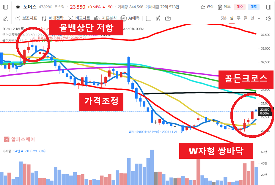 ■ 에셋마스터의 [1] 돌고래차트는 매매기준. - 60일선을 이탈하고 급격하게 하락하던 주가가(가격조정,기간조정) 하락을 멈추고 캔들이 5일선을 돌파 후 안착하고, 5일선은 20일선을 골든크로스 해주어야 합니다. 다음날 혹은 그다음 날 5일선 지지선에서 매수 걸고 기다리는데, 이때 60일선 이탈 이후 급격한 하락은 신뢰도가 높습니다. - 참고, 20일선 이탈 시 손절잡고 진행하는 기준입니다. #돌고래차트 #주식투자 #주식공부 #주식공부방 ■ 에셋마스터의 [2] 볼린져밴드 돌고래차트 매매기준. 볼린져밴드 기간을 74로 설정하고, 캔들이 설정한 볼린져밴드 상단선을 돌파해 주어야 합니다. 이때 5일선이 볼린져밴드 상단선을 골든크로스 해주어야 신뢰도가 높습니다. 5일선이 볼밴상단선을 돌파하고 5일선 지지선에서 매수 기준을 잡습니다. -참고. 수익 중이면 5일선이탈시 비중축소 볼밴이탈시 올매도 기준입니다. 손실 중이면 볼밴상단선 이탈 시 손절선을 잡습니다. #볼밴돌고래차트 #주식공부방 #주린이공부 ■ 돌고래차트 매매는 항상 분할매수(2회~3회)를 원칙으로 합니다. 주식공부방 기준은 1차매수 2차매수로 나눠서하는 투자를 원칙으로 하며, 1차 돌고래차트 만들고, 이탈하면 2차매수도 돌고래차트를 재차 만들때 재투입합니다. #주식투자시 분할매수를 못하면 주식에서 실패할 수 밖에 없습니다. ■ 수익금은 꼭 인출해서 별도의 CMA계좌로 옮겨두세요.. 이후 폭락장(개인들의 반대매매가 나오는시점)이 오면 그때 재투자를 원칙으로 합니다. ■ 본 내용은 에셋마스터가 직접 #주식공부하는 내용을 공유하여 올려드리는 것입니다. ["일정한 대가를 받고 주식에 대한 종목 추천이나 1:1 리딩은 절대 하지 않습니다".] 주식투자에 대한 교육 차원이며 종목 추천을 드리는 것이 아님을 꼭 밝혀드리고, 주식투자에 대한 수익이나 손실은 본인의 몫임을 말씀드립니다. ■ #주식투자에 앞서 #주식공부는 증권사의 모의투자로 본인의 실력을 향상시키는 것을 먼저 권유 드립니다. #노머스 #차트분석 #기술적분석 엔터테크 기업으로 아티스트 IP를 활용한 종합 솔루션을 제공하고 있으며, 앨범 판매와 공연 주최뿐 아니라 콘텐츠 제작, MD판매, 유료 메세지 서비등 팬텀 플랫폼을 통한 IP사용권리를 계약으로 취득하여 활동을 지원하고 있는 시가총액 2579억원의 코스닥 상장기업입니다. 상장이후 단기 조정이후 추세를 우상향으로 돌려주면서 상승하던 주가는 다중 고점을 만들어주면서 볼린져밴드 상단선의 저항선에서 돌파하지 못하고 60일선을 이탈하면서 급격하게 조정을 받고 있는 상황입니다. 60일선을 이탈하면서 급격하게 하락하던 주가는 하락을 멈추고 5일선이 20일선을 골든크르스하고 추가 상승없이 조정을 받는 상황에서 전저점의 지지선에서 5일선을 돌파하고 재차 골든크로스를 만들어주는 W자형 쌍바닥 패턴을 보여주고 있습니다. 매수밴드 5일선과 20일선의 지지선에서 흐름지켜보고, 20일선 이탈시 손절선 잡아보겠습니다. #노머스 #재무분석 #기본적분석 노머스의 매출액은 2022년 180억원에서 2024년 689억원으로 증가하고 있으며, 당기순이익은 2022년 -112억원에서 2024년 99억원으로 흑자전환해 주고 있습니다. #부채비율은 2022년 -207%에서 2024년 14%로 증가하고 있으며, 유보율은 2022년 -65825%에서 2024년 1451%로 증가하고 있습니다. #노머스 #시장이슈및테마 #한한령관련주 #K콘텐츠관련주 #공연및기획관련주로 엮여 있는 상황에서 이슈받는지 흐름지켜보겠습니다. #와이지엔터테인먼트 #재무분석 #기술적분석 음반 및 음원 사업과 공연 및 매니지먼트 사업을 영위하고 있으며, 일본, 미국, 중국 등 해외 법인과 MD제조 유통 회사 와이지플러스, 투자 회사 와이지인베스트먼트 등의 종속회사를 보유하고 있는 시가총액 1조 1850억원의 코스닥 상장기업입니다. 급격한 가격조정이후 240일선을 돌파하면서 추세 우상향 정배열로 상승하던 주가는 볼린져밴드 상단선의 저항선을 돌파하지 못하고 저항선에 밀리면서 조정을 받는 상황에서 60일선의 추세선을 이탈하는 모습을 보여주고 있습니다. 60일선을 이탈하면서 급격하게 조정을 받고 하락하던 주가는 하락을 멈추고 캔들이 5일선을 돌파하고 5일선이 20일선을 골든크로스하면서 단기 횡보하고 있는 상황에서 W자형 짝궁뎅이 차트패턴을 만들고 있습니다. 매수밴드 5일선과 20일선의 지지선에서 흐름지켜보고 20일선 이탈시 손절선 잡아보겠습니다. #와이지엔터테인먼트 #재무분석 #기본적분석 와이지엔터테인먼트의 매출액은 2022년 3912억원에서 2024년 3649억원으로 감소하고 있으며, 당기순이익은 2022년 468억원에서 2024년 200억원으로 감소하고 있습니다. 부채비율은 2022년 35%에서 2024년 21%로 감소하고 있으며, 유보율은 2022년 4063%에서 2024년 4797%로 증가하고 있습니다. #와이지엔터테인먼트 #시장이슈및테마 #중국소비관련주 #한한령관련주 #음원서비스관련주 #엔터관련주로 엮여 있는 상황에서 이슈받는지 흐름지켜보겠습니다. #네이버에서 에셋마스터 #돌고래차트 #야구공주식이론 #주식공부방 #볼린져밴드설정 #5일선매매기법