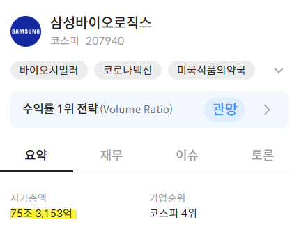 그래도 삼성 이름값 하려면 시총 10조는 넘겨야 하지 않을까요? 암만 에이비엘바이오가 빅파마와 다수 계약 체결 + 지분투자 공시까지 했지만, '삼성'인데요?