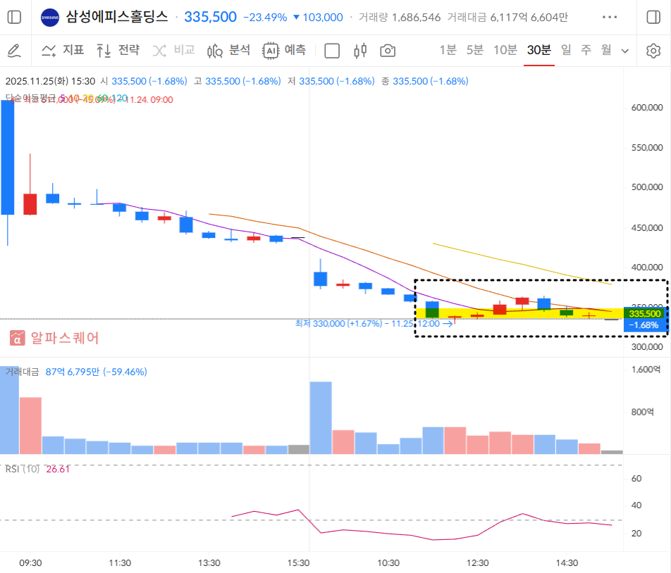 이틀 사이에 매수하신 분들은 눈 뜨고 날벼락을 맞았는데요.. 삼성그룹 지배구조 핵심 종목이 여기서 쉽게 가라 앉을 거라고 생각하시는건 아니겠죠?