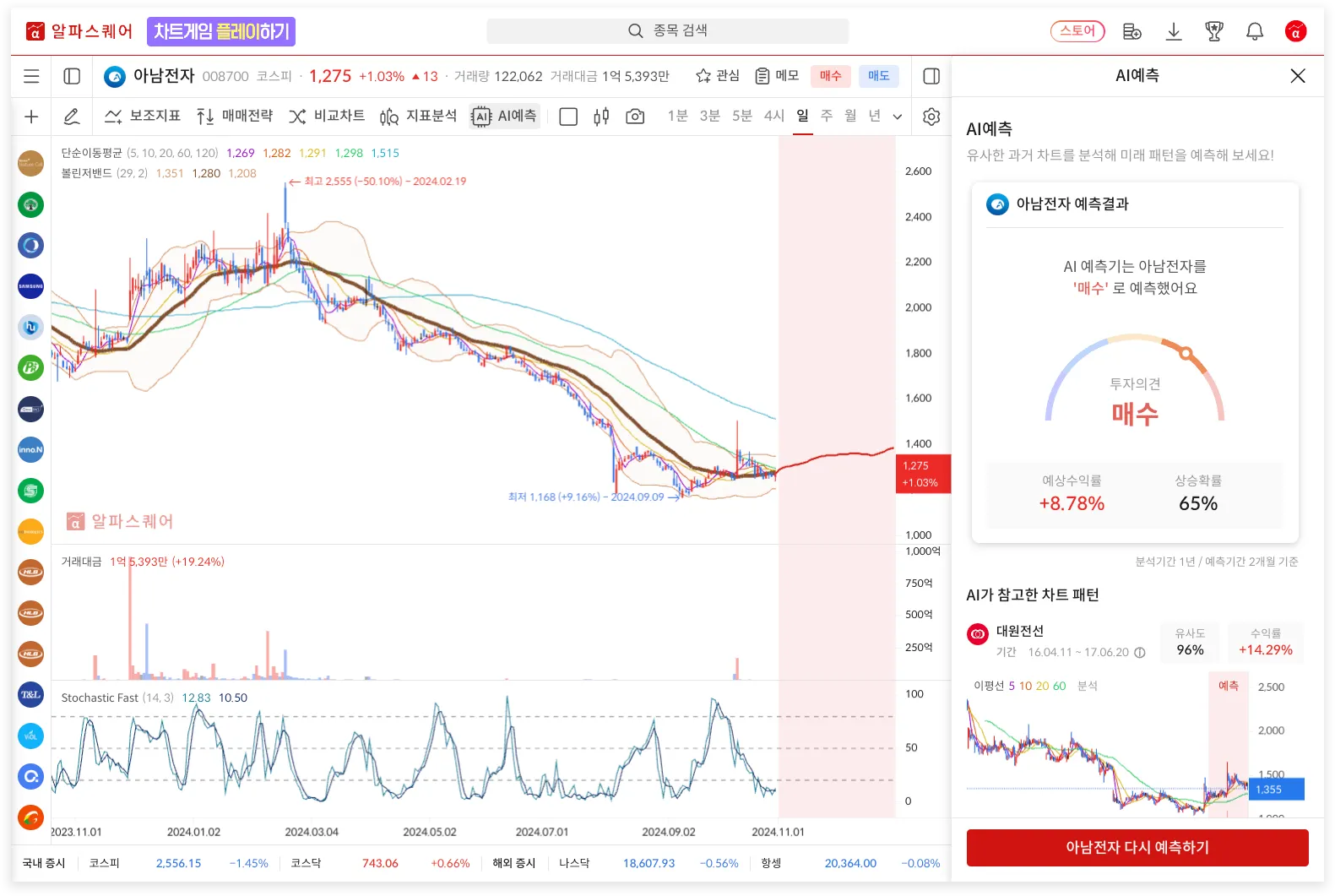 - 유사 차트 패턴 분석: AI가 현재 보고 있는 종목의 차트 흐름을 분석해, 과거에 가장 비슷했던 차트 패턴들을 찾아냅니다. "지금 이 차트, 과거 A종목의 2021년 흐름과 90% 유사합니다"라고 알려주는 식이죠.