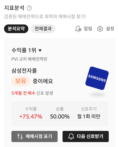 - 실시간 타이밍 알림: 하루 종일 차트만 볼 수는 없죠? 내가 선택한 전략에서 매매 신호가 포착되면, 스마트폰으로 실시간 알림을 보내줍니다.