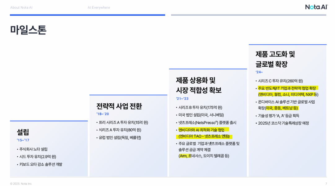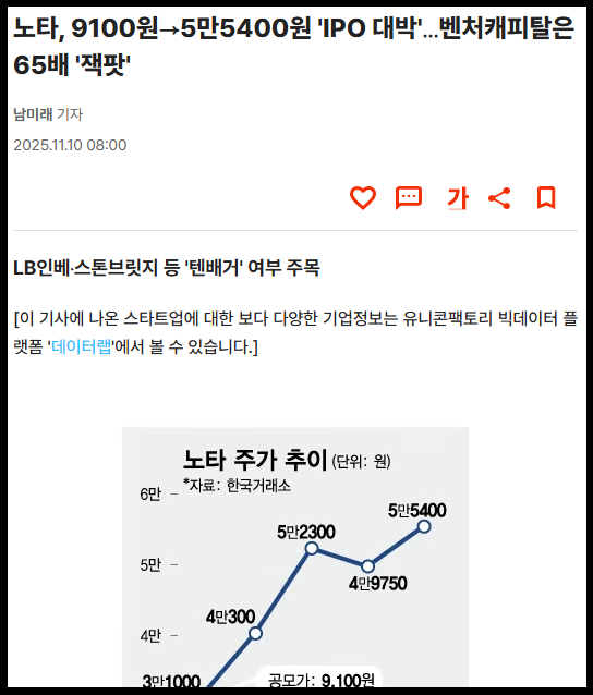 노타는 분명 아직 초기 단계지만, AI 최적화·온디바이스 AI라는 확실한 포지션을 갖고 있습니다. 다만, 단기적으로는 기관 물량 부담과 공모가 대비 급등에 따른 밸류 부담이 공존합니다.