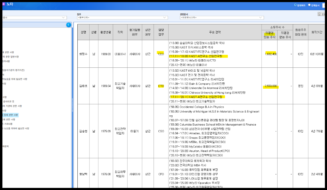 흥미로운 건 CTO 지분이 CEO보다 많다는 점.
